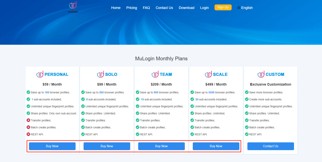 2. Open MuLogin official website -》Pricing Page -》Select Package -》Enter account -》Select Payment Method -》Complete renewal