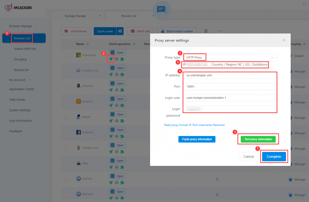 Note: You can directly copy the Smartproxy proxy information, and then click "Paste proxy information" to set the relevant content (us.smartproxy.com:10001:user-mulogin-sessionduration-1:mulogin****).