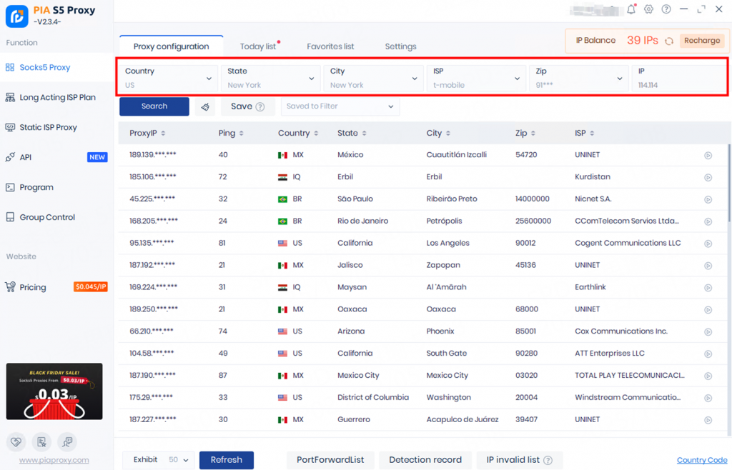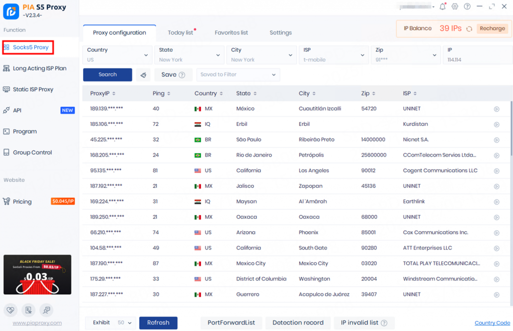 2. 在左侧功能栏中,点击选择Socks5代理,点击不同套餐名称以切换代理。