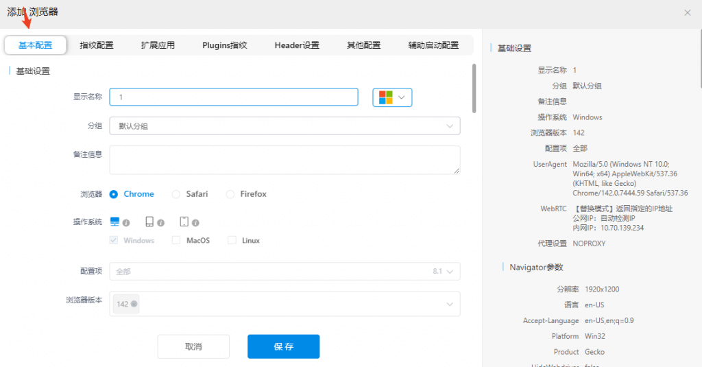4. 新建浏览器:【添加浏览器】,出现如下图详细信息页面,填写【基本设置】板块的信息。