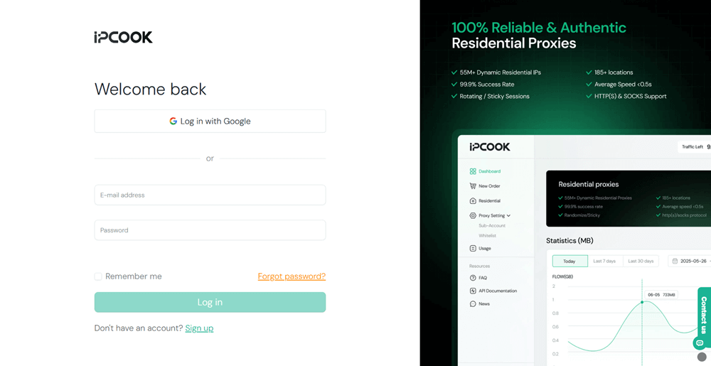 Step 1. Visit IPcook and log in to your account. If you don't have one, click "Sign up" to create one.