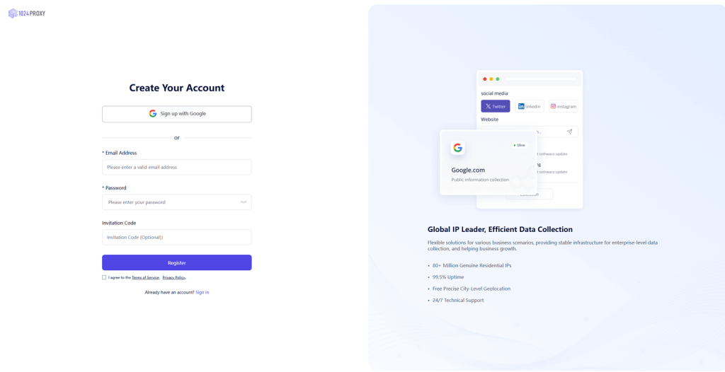 1. Log in to the 1024proxy official website. (Free trial includes sub-account features)