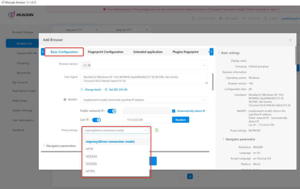 Step 3: Open MuLogin and Configure the Proxy